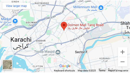 S-12, Second Floor, Dolmen Mall, Tariq Road, Karachi.