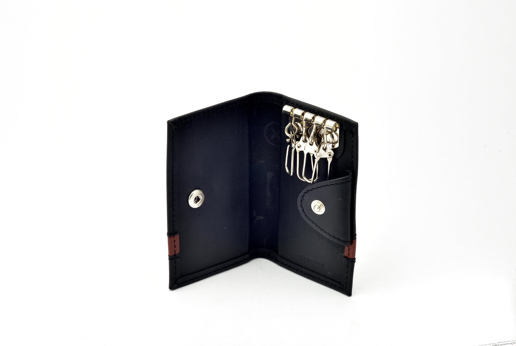 Keychain: four (4) key holder flap closer with button.