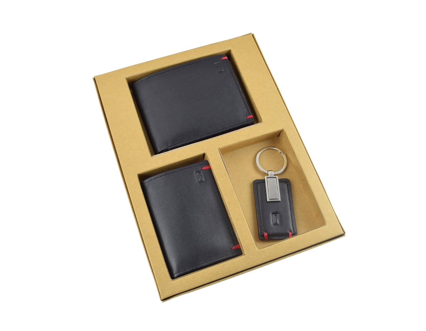 Ideal gift for your special ones. Designed with premium quality leather, including Men’s Wallet, Card Case, Keychain & Box.