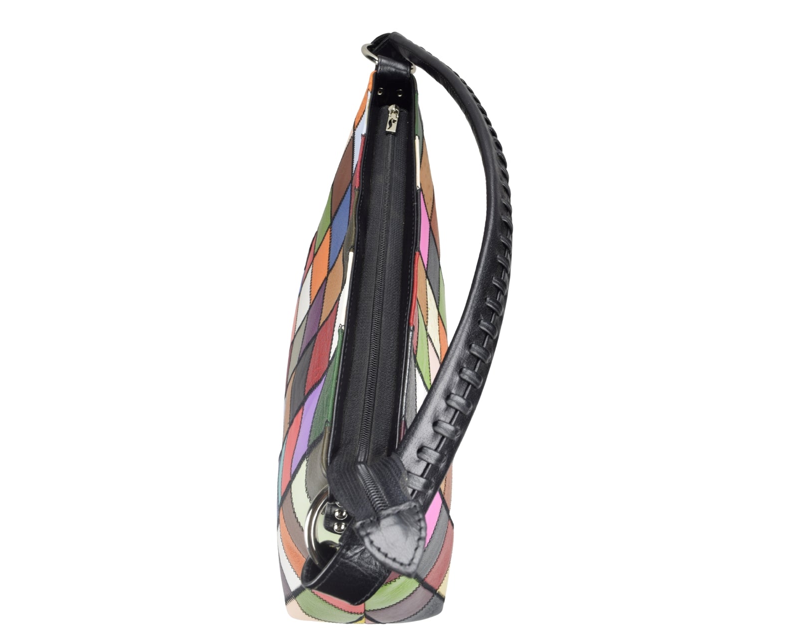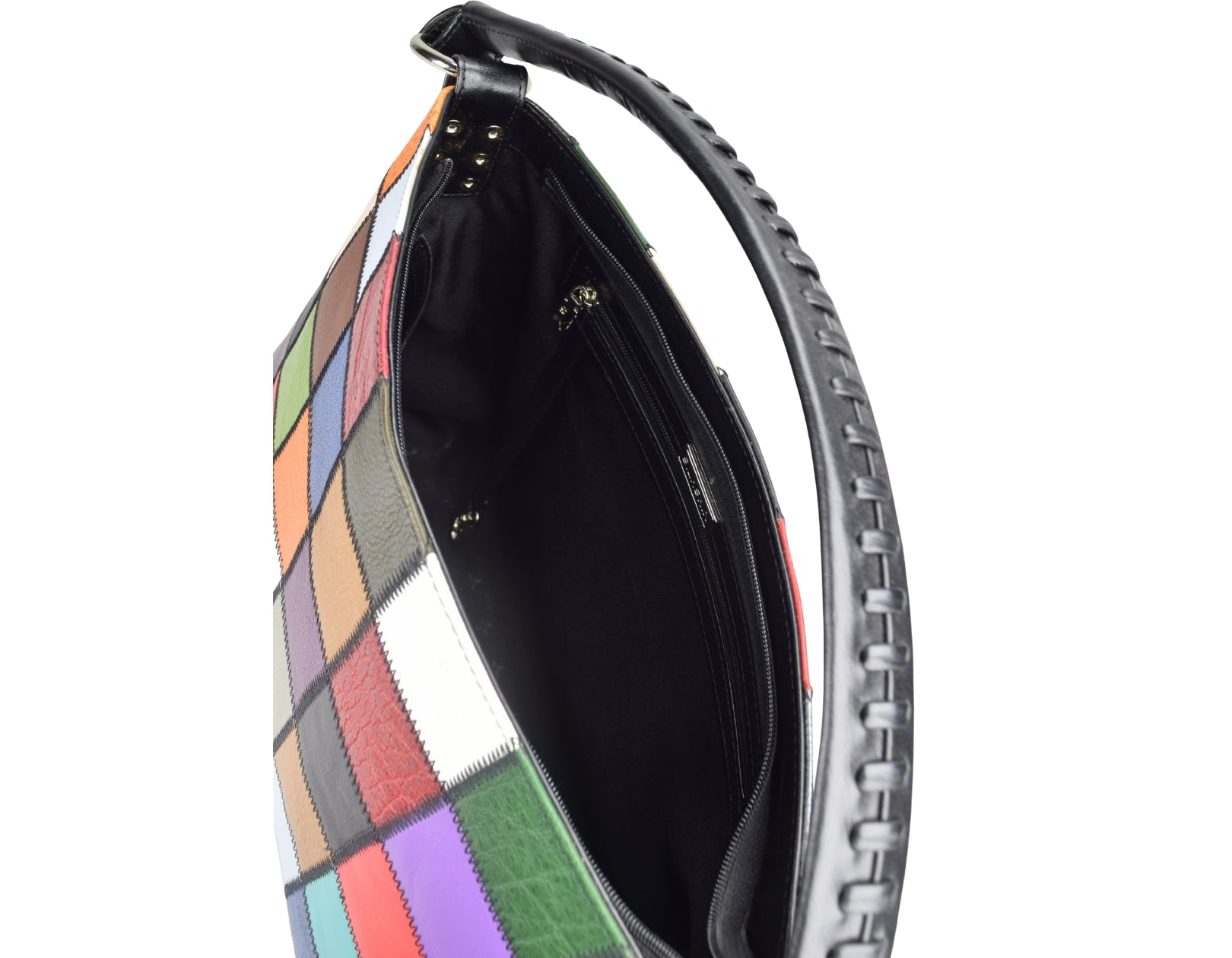 Add a pop of color to any outfit with the Mosaic Tote. This unique ladies handbag features a striking patchwork design made from high-quality leather squares in a variety of vibrant and earthy tones. The sturdy, rolled handle ensures comfortable carrying, while the spacious interior is perfect for your daily essentials. It's a versatile and eye-catching accessory that's sure to get you compliments wherever you go